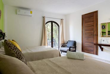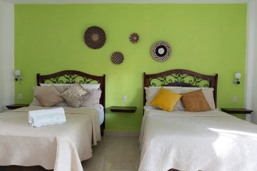 Esta Suite cuenta con 2 camas matrimoniales, 1 baño, balcón privado fuera de la habitación con vista y acceso a la piscina, A/C y WI-FI gratis.