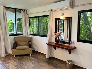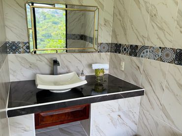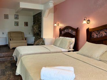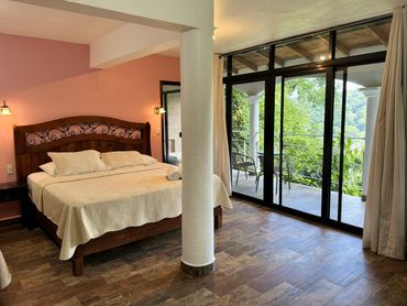 Nuestra suite destaca por su privacidad y sus vistas limpias, está equipada con 1 cama matrimonial y 1 cama Kingsize, baño completo, terraza privada con vistas panorámicas a las montañas y al pueblo de Xilitla, además de una piscina personal de spa en el exterior con agua caliente, A/C y WI-FI gratis.