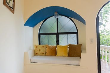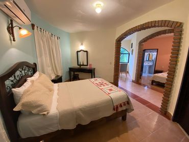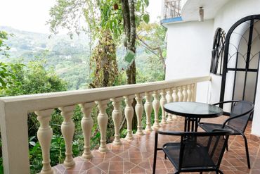 Esta Suite cuenta con 2 camas matrimoniales, 2 baños, terraza privada fuera de la habitación con vista a las montañas y al pueblo de Xilitla, A/C y WI-FI gratis.